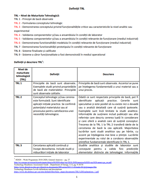 Evaluarea TRL permite încadrarea obiectivă a unei tehnologii pe scala internațională 1–9, utilizată inclusiv în cadrul programelor europene precum Horizon Europe, fiind un instrument esențial pentru: