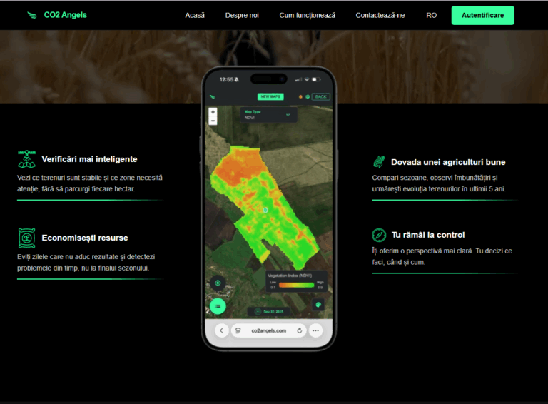 CO2 Angels este o platformă digitală de monitorizare și analiză a terenurilor agricole, bazată pe imagini satelitare și indicatori de vegetație (ex. NDVI). Soluția oferă fermierilor și administratorilor de teren o perspectivă clară asupra stării culturilor, facilitând intervenții rapide și optimizarea resurselor.
